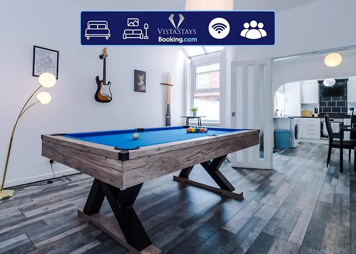 Situated 10 minutes' drive from Urbis Building, the 1-bedroom Modern Central 3 Bed With Pool Table And Parking offers guests to enjoy billiards and a golf course. Located 10 minutes' drive from Old Trafford Cricket Ground, the villa provides Wi-Fi and a car park.